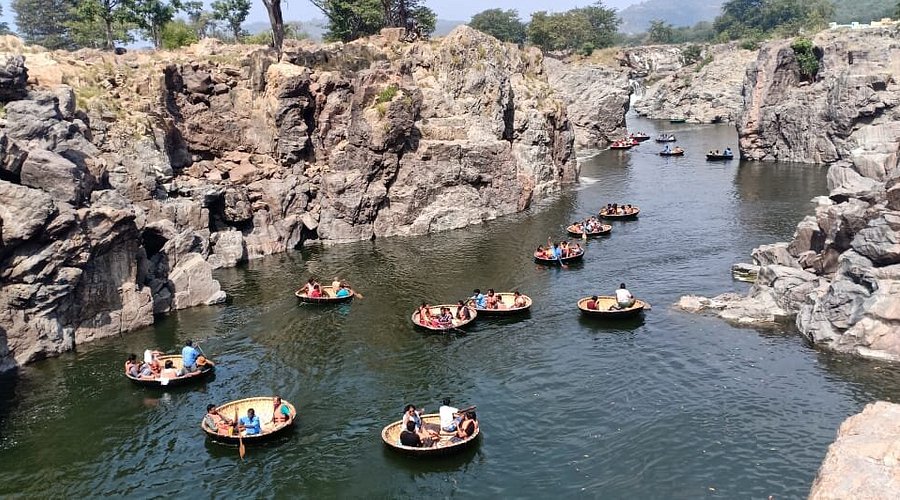 Coracle Boat Rides: Traditional circular boats navigate through the cascading waters